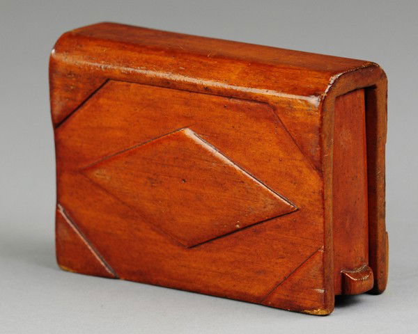 SoldFOLK ART CARVED SPRUCE GUM BOOK BOXFOLK ART CARVED SPRUCE GUM BOOK BOXPine, double slide lid with inset photo of a gentleman, (probably the carver), decorated with birds, a horse, stars, crescent moon, hearts and four-leaf clovers, iniSee Sold Price