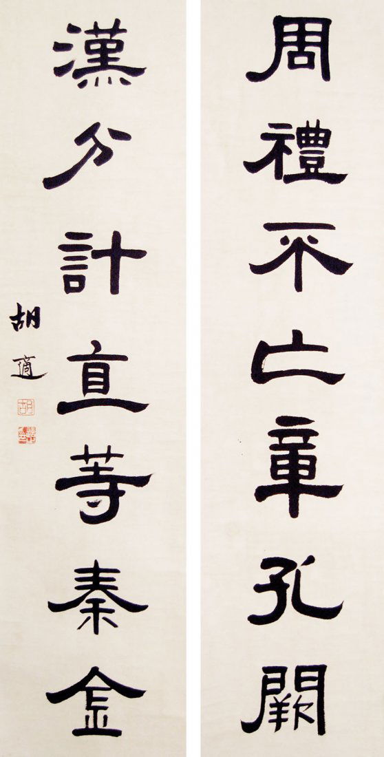 Hu Shi - Calligraphy Script in Couplet