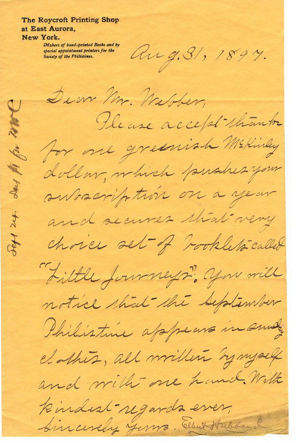 HUBBARD, ELBERT - 2 MLS, Signed book