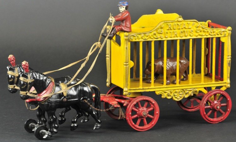 (2) CAST IRON HORSE-DRAWN TOYS, FIRE HOSE WAGON & HARNESSED HORSESFeb 20, 2026Cast Iron Sulky Cart, Horse, and Driver. Appears to be original paint, unusual spring mechanism, 12"Feb 24, 2026Jenny The Balking Mule Lithographed Wind Up ToyMar 07, 2026CARL HAGENBECK LION TABLEAU WAGON #672 days LeftCIRCUS WAGON MODEL - TWO-JESTERS2 days LeftCast Iron Black Americana Donkey Watermelon Cart. Cast iron...Feb 19, 2026National Biscuit Company ToyFeb 21, 2026ISSMAYER HORSELESS AUTO DELIVERY WAGONFeb 27, 2026Bliss Rough and Ready Fire Pumper ~ Paper on WoodFeb 28, 2026Cast Iron and Pressed Steel Jockey Bell Toy. Watrous Mfg. C...Feb 19, 2026CHEIN NIFTY BUTTER CUP & SPARE RIBS PULL TOYFeb 27, 2026Large Wood Coach Pulled by 2 Platform HorsesFeb 28, 2026CIRCUS MODEL - BURKE BROS. CIRCUS2 days LeftHISPANIA HORSE DRAWN MUSICAL WAGONFeb 27, 2026The Polar Ice Wagon- Two Horse3 days LeftSingle Horse Road Cart - Cast Iron with Articulated Horse3 days Left