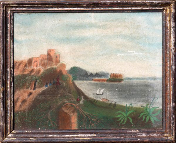 HUDSON RIVER SCHOOL. PASTEL, PRIMITIVE STYLE