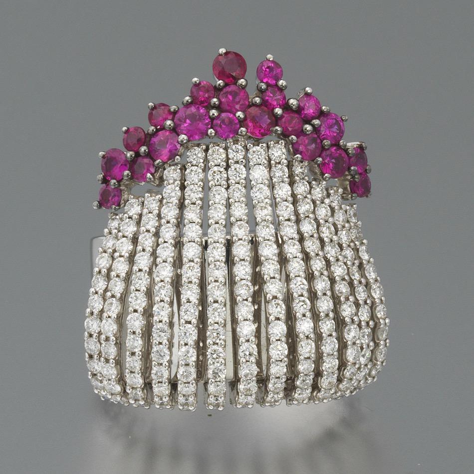 Hueb 18k Gold, Diamond, and Ruby Cocktail Ring