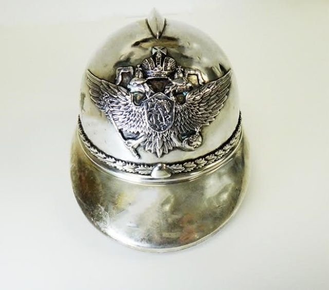 HUGE RUSSIAN IMPERIAL SILVER HELMET