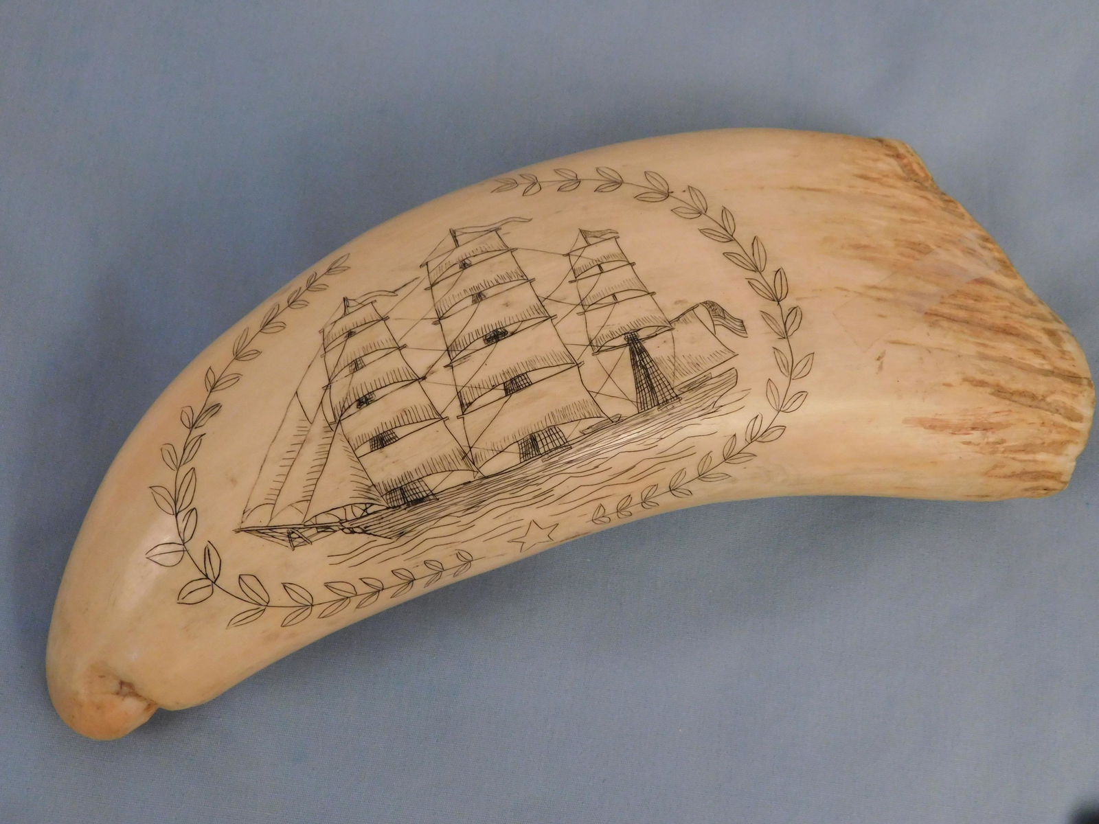 HUGE WHALE TOOTH - CLIPPER SHIP