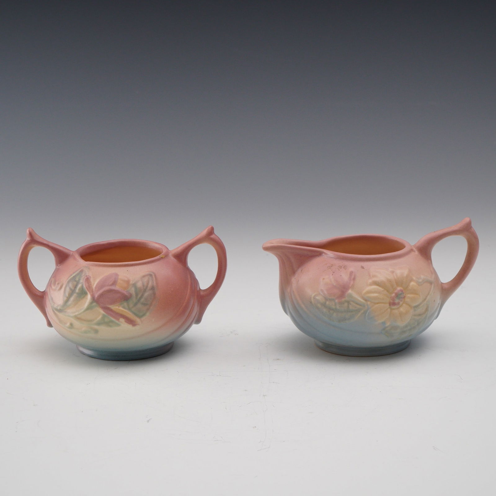 Hull Pottery Magnolia Pattern Creamer and Sugar Set