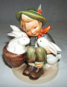 SoldGood Hunting 307 - Goebel Hummel FigurineYoung boy with rabbit. Hand decorated ceramic. Title label on base. Goebel backstamp. Issued: 20th c. Dimensions: 5.25"H Manufacturer: Goebel Country of Origin: GermanySee Sold Price