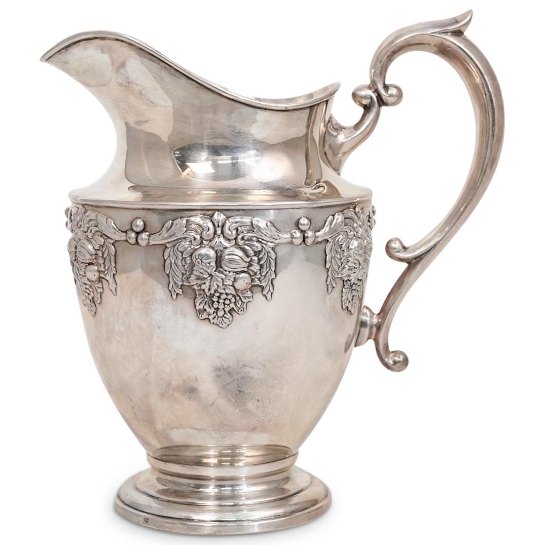 SoldHUNT STERLING SILVER WATER PITCHERHunt sterling silver water pitcher. 22.5 OZT, 10" to top of handle.See Sold Price