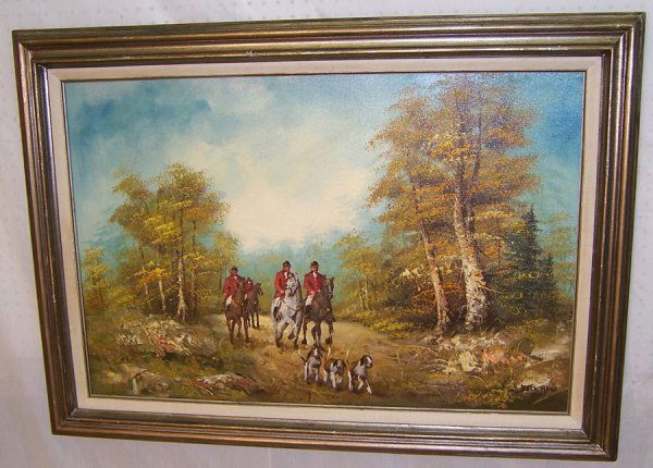 Hunt scene oil on canvas signed