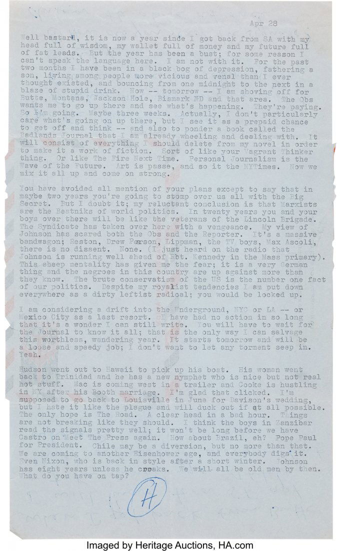 Hunter S. Thompson Typed Letter Signed with Auto