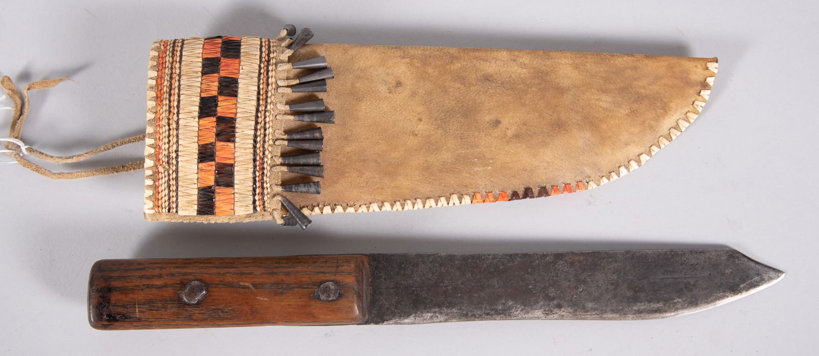 LOT OF FOUR KNIVES AND WOODSMAN'S PALMar 22, 2026Mexican made Bowie Knife with Leather Sheath19th-C. Lakota Sioux Beaded Hide Knife SheathMar 14, 2026U.S. Model 1917 & U.S. Model 1898 Krag KnivesMar 14, 202611 1/2” Antique Knife and SheathMar 22, 2026Sioux beaded knife and knife sheath, pre 19003 days LeftVintage Wood Sheath Carved Pistol Shaped KnifeMar 17, 2026FILIPINO PIRA KNIFE W/ SCABBARD4 days Left10.1/2 Vintage Wood Handle Knife With Seath not original SeathMar 22, 202619th-C. Blackfeet Piegan Dag Knife & Sheath ex-MusMar 14, 2026M.D. Murphy Custom Knife & Sheath3 days LeftFixed Blade Knife With Leather Sheath 10"4 days LeftArkansas Dozier Fixed Blade Knife With Leather Sheath 7.5"4 days LeftWooden Handle India KnifeMar 14, 2026Large bone handled bowie knife in leather sheath, 14", few minor rust spots on blade5 days LeftAntique Nepalese Kukri (Khukuri) with Inscribed Blade & Decorated Scabbard, plus Companion KnivesMar 14, 2026