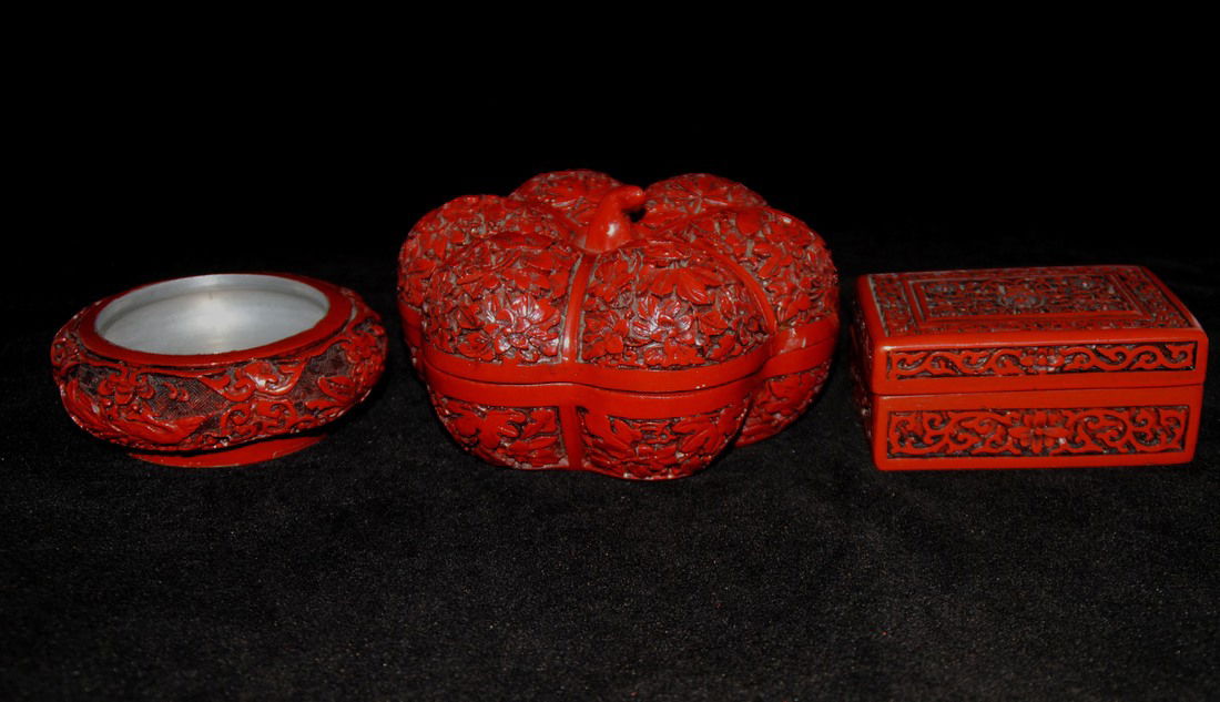 LOT OF THREE CHINESE VINTAGE JEWELRY BOXES4 days LeftLot of 4 Chinese Cinnebar Boxes.3 days LeftCHINESE CHOP STAMPS AND LIQUEUR GLASSES (3)Mar 08, 20264 snuff bottles. Lacquer carving and bone. China.3 days LeftA pair of exquisite Hetian jade pits full of red jade jarsMar 22, 2026A red lacquerware travel picture box of XuhuatangMar 07, 2026Three Asian cinnabar style itemsMar 10, 2026A fine lacquerware three-legged aroma burnerMar 07, 2026A beautiful flat step Qingyun pine flower warm inkstoneMar 18, 2026A pair of Chinese cinnabar lacquer bookends, a covered box and a brush washer, 19/20th C.Mar 18, 20262 Pcs Chinese PorcelainMar 06, 2026A cricket jar of Ming Xuande blue and white colorful courtyard ladyMar 07, 2026An Exquisite Famille-Rose Painted Gold Litchi Pattern with poem Jar603 Lots Away5 Decorative Asian ItemsMar 06, 2026Set of 5 Vintage Chinese Sauce Dishes2 days LeftLots Chinese porcelainsMar 05, 2026