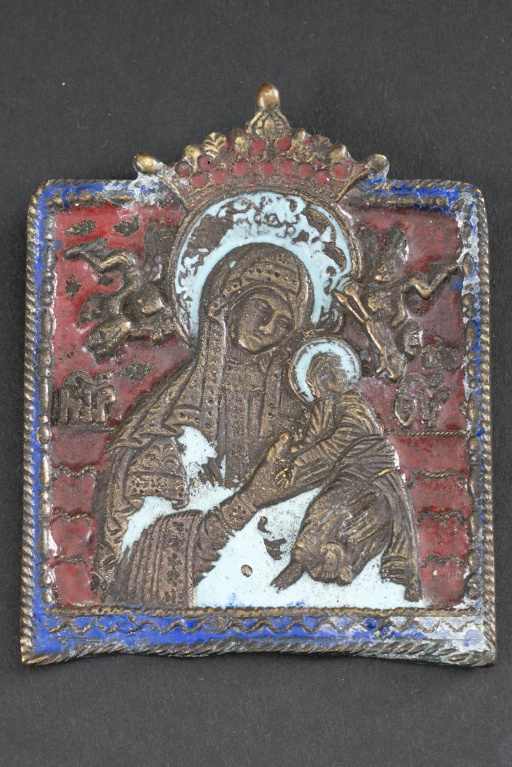A composed lot of three tempera on wood Russian icons with silver and silver plated oklad.Feb 24, 2026Russian Wood and Gilt-Silver Mother of God Icon2 days Left2 Russian icons with oklad (silver and copper) and 2 Orthodox bronze crosses with enamelFeb 15, 2026Antique Russian Orthodox Icon of the Mother of God with Christ ChildFeb 21, 2026Large Russian Icon of Virgin Dated Copper Oklad 1739, Attrib. Yaroslavl-Kostroma SchoolFeb 21, 2026Russian icon of the Mother of God of Kazan, 19th centuryFeb 15, 2026Russian Orthodox Enamelled Bronze Travel Icon with the Birth of the VirginMar 07, 2026Dodici icone e un crocifisso Due santi, bronzo, Russia, XIX secolo, 2,5 x 2,5 cm Madre di DioFeb 17, 2026Antique Russian Icon - 19th c. Russian '84' Silver Icon of TikhvinFeb 26, 2026Cinque icone Trittico con Deesis e Santi Eletti Devjatka, bronzo, Russia, XIX secolo, 6,3 x 16,5 cmFeb 17, 2026Large Medieval Gilt Bronze Champleve Plaque Depicting Christ in MajestyMar 03, 2026Russian Icon, Mother of God, Oil on Wood Painting in a Gilt Copper with Embossed Scrollwork, 19th2 days LeftAntiques, Orthodox, Russian icon-pendant Mother of2 days LeftCIRCA 1875 KHLEBNIKOV RUSSIAN ICON IN GOLD WASHED SILVER REPOUSSEFeb 21, 2026Icona Stauroteca con Sant'Elia, San Michele, Madre di Dio di Kazan e i Dottori della Chiesa BasilioFeb 17, 2026Icon - 19th century Russian Antique Silver Icon Mother of God d. 1855 - .875 (84 Zolotniki) silver1 day Left