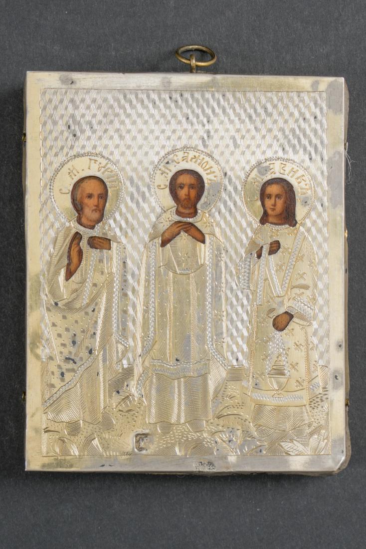 A composed lot of three tempera on wood Russian icons with silver and silver plated oklad.Ostantix Auctions4.4(13)€1603 days Left