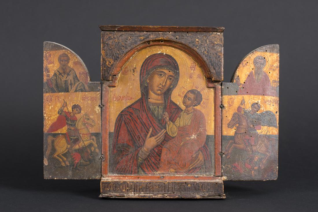 ICÔNE TRIPTYQUE, GRÈCE, XIXe SIÈCLE