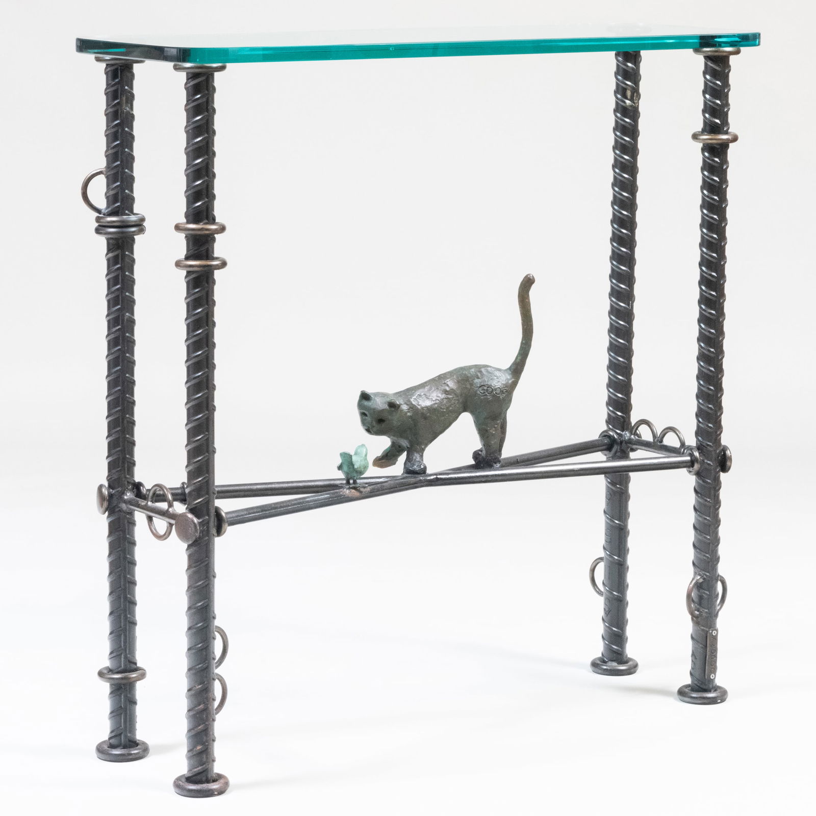 Silas Seandel Style, Brutalist Modern, Metal, Glass, Coffee Table, USA, 1970sWrought Iron Three Light ChandelierVintage Maitland Smith Wrought Iron Oval Console TableArchitectural Iron Console Table with Glass Top4 days LeftVintage Gilt Wrought Iron Long Coffee Table4 days LeftA bronze gold and silver inlaid treasure tiger of the Han DynastyMar 22, 2026Rare Vintage Ilana Goor Rebar Birds Side Table Silver5 days LeftModern Beveled Glass Top Gilt Metal Console Table3 days LeftMichael Heltzer Metal and Cast Stone Console Table2 days LeftGlass Top Table With Metal BaseMar 06, 2026Wrought Iron Patio Console Table with Green Marble TopMar 07, 2026Giacometti Style Modern Bronzed Iron Two-Tier Console Table with Glass Shelves4 days LeftDARK WOOD MODERN CONSOLE TABLE2 days LeftModern, Mythical beast figureMar 05, 2026Bronze sculpture "Two panthers licking each other", signed "Bugatti 1906"1 day LeftMODERN CONSOLE TABLE W GEOMETRIC BASE 47"Feb 23, 2026