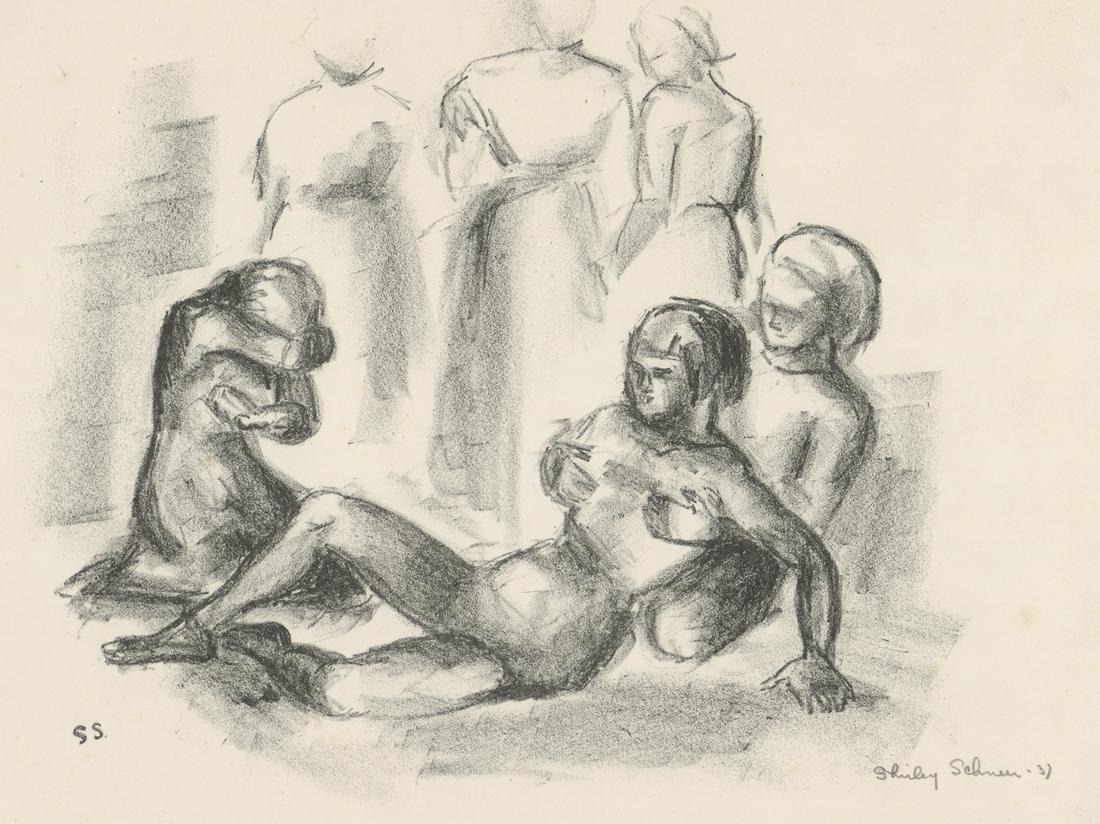 Illegibly Signed Lithograph [people]
