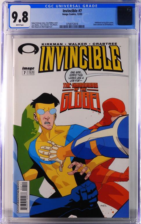 Image Comics Invincible #7 CGC 9.6Apr 01, 2026Image Comics Invincible #1 CGC 9.2Apr 01, 2026Image Comics Invincible #60 CGC 9.8Apr 01, 2026Image Comics Invincible #3 CGC 9.8Apr 01, 2026Image Comics Invincible #3 CGC 9.6Apr 01, 2026Image Comics Invincible #6 CGC 9.6Apr 01, 2026Image Comics Invincible #6 CGC 9.8Apr 01, 2026Image Comics Invincible #11 CGC 9.6Apr 01, 2026Image Comics Invincible #61 CGC 9.8Apr 01, 20262 Image Comics Invincible #4 and #6 CGC GroupApr 01, 2026Image Comics Invincible #5 CGC 9.6Apr 01, 2026Image Comics Invincible Returns #1 CGC 9.6 JSA Ryan OttleyApr 01, 2026Image Comics Invincible Returns #1 CGC 9.6 Larsen Variant Cover JSA Ryan OttleyApr 01, 20263 Image/Skybound and Image Comics Invincible #93, #100 and #110 CGC 9.8 GroupApr 01, 20263 Image Comics Invincible #15, #24 and #52 CGC GroupApr 01, 20262 Image Comics Invincible #60 and #61 CGC 9.8 GroupApr 01, 2026