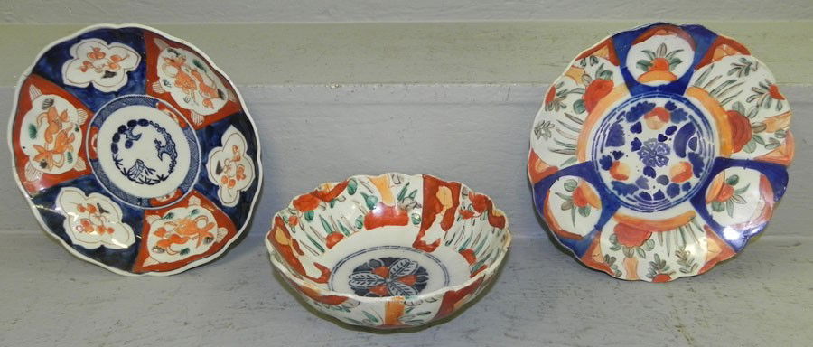 Imari bowl and 2 plates.