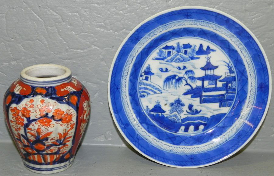 Imari vase & Canton small dish.