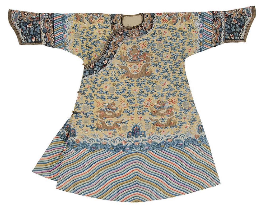 2 Continental European Silk Damask and Brocade Dalmatic Robes, 17th/18th CenturyFeb 24, 2026AN IMPERIAL 'TWO DRAGONS' SILK BROCADE FRAGMENT, MING DYNASTYMar 12, 2026Late Qing Dynasty, Red Satin Jifu Robe with Gold-Thread Embroidered Five-Clawed DragonsMar 02, 2026Late Qing Dynasty, Imperial Yellow Satin Informal Robe with Hidden Dragon MedallionsMar 02, 2026A Fine Qing Bright Yellow Kesi Dragon Robe with DragonMar 08, 2026A CHINESE IMPERIAL EMBROIDERED DRAGON ROBEMar 01, 2026Court robe China, Qing dynasty, 19th century106 Lots AwayChinese Silk Embroidered Court Robe, 19th CFeb 26, 2026Chinese Gold Embroidered Silk Court Robe, 19th CFeb 26, 2026Qing Dynasty silk dragon robeMar 08, 2026A Fine Qing Stone-Blue Brocade Changfu Robe Woven with Round Dragon MedallionsMar 08, 2026A Fine Qing Bright Yellow Brocade Jifu Robe Embroidered with PhoenixesMar 08, 2026A MAGNIFICENT AND RARE IMPERIAL YELLOW-GROUND 'KESI' PHOENIX ROBE,JIFUQING DYNASTY, 19TH CENTURY6 days LeftA CHINESE EMBROIDERED DRAGON ROBEMar 01, 2026A Fine Qing Treasure-Blue Robe EmbroideredMar 08, 2026Chinese Silk Dragon Robe with EmbroideryFeb 28, 2026