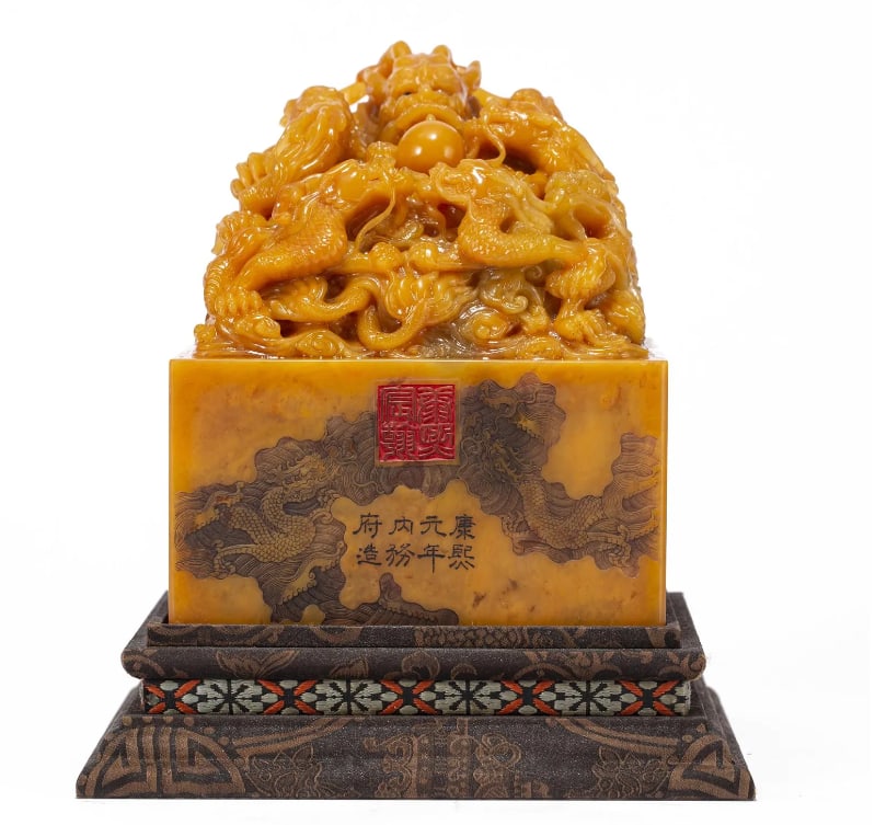 Tianhuang Stone Seal with Nine Dragons Playing a Pearl PatternFeb 24, 2026Shunzhi twelfth year Imperial Household Department supervised production of Tianhuang stone sealFeb 17, 2026A fine Shoushan stone Tianhuang-grade Tianhuang stone double dragon playing with a pearl, made under15 hrs LeftA CARVED TIANHUANG DRAGONS SEALMar 01, 2026Qing Dynasty Kangxi period, Tianhuang stone seal with lion knob, inscribed "Imperially Bestowed to12 hrs LeftA SHOUSHAN TIANHUANG STONE SEAL WITH DRAGON AND PHOENIX KNOBFeb 07, 2026A Exquisite Shoushan Tianhuang Stone Dragon SealFeb 26, 2026A Exquisite Shoushan Tianhuang Stone Dragon SealFeb 26, 2026A CARVED TIANHUANG LINGZHI SEALMar 01, 2026A SHOUSHAN TIANHUANG STONE SEAL WITH GROUP OF DRAGONS PATTERN1045 Lots AwayShoushan Stone Carving Five Dragons Playing with the Pearl Button, Pine Crane Longevity Pattern SealFeb 27, 2026Shoushan Stone Seal with Lion KnobFeb 28, 2026A SHOUSHAN TIANHUANG STONE SEAL WITH DRAGON KNOBFeb 07, 2026The Imperial Household Department's Five-Dragon Yellow Stone Seal for Land Reclamation in the13 hrs LeftA SHOUSHAN TIANHUANG STONE CARVED DRAGON TURTLE KNOB SEAL6 days LeftThis is a large square seal carved from Shoushan Tianhuang stone during the Qianlong period of theFeb 18, 2026