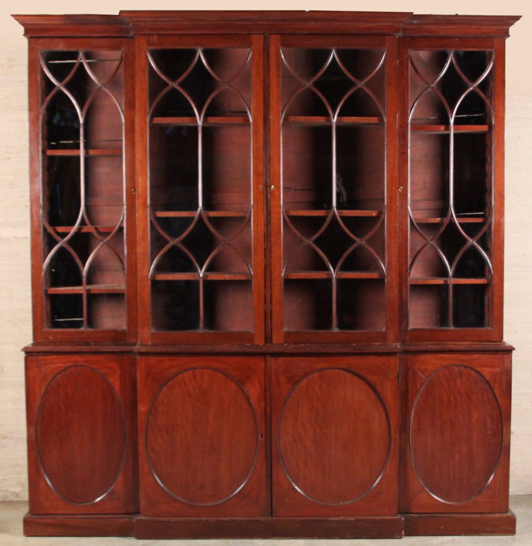 IMPORTANT GEORGE III MAHOGANY BREAKFRONT BOOKCASE