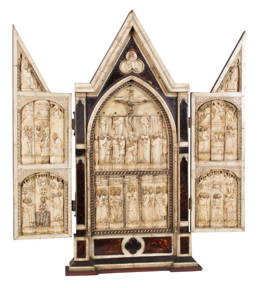 Exceptional 19th Century French Neo-Gothic Triptych23 hrs LeftAn imposing neo-gothic polychrome wood decorated altar cabinet mounted with 38 sealed theca relics139 Lots AwaySpanish Carved Walnut and Fruitwood Triptych2 days LeftAltarpiece with Virgin of Battle, Saint Francis and Saint Paul, 20th Century23 hrs LeftItalian Wood Triptych Holy FamilyImportant Large Portable Altar Triptych French Neo-Gothic 19th Century23 hrs LeftImportant private devotional altar, post-colonial, Bolivia, Cusco, 18th-19th centuries23 hrs LeftAttrib. Angelica Kauffman Oil/Board: Angel Blowing Horn3 days LeftFine Italian Baroque Marble-Mounted Fruitwood and Various Wood Marquetry and Parcel-Gilt Cabinet2 days LeftGilt Bronze Screen with the Three Buddhas of Time, Qing DynastyMar 04, 2026Three-panel folding screen in carved wood with leather panels, India, 19th century23 hrs LeftVintage Anglo-Indian Painted and Carved Four-Panel Folding ScreenMar 05, 20263 Miniature Porcelain Portraits after Old MastersMar 14, 2026A Chinese carved gilt-lacquered wooden three-panel folding screen with a narrative design, 19/20thMar 18, 2026Medieval-style triptych in enamels, 19th century23 hrs LeftA Group of 4 Sculptures7 days Left