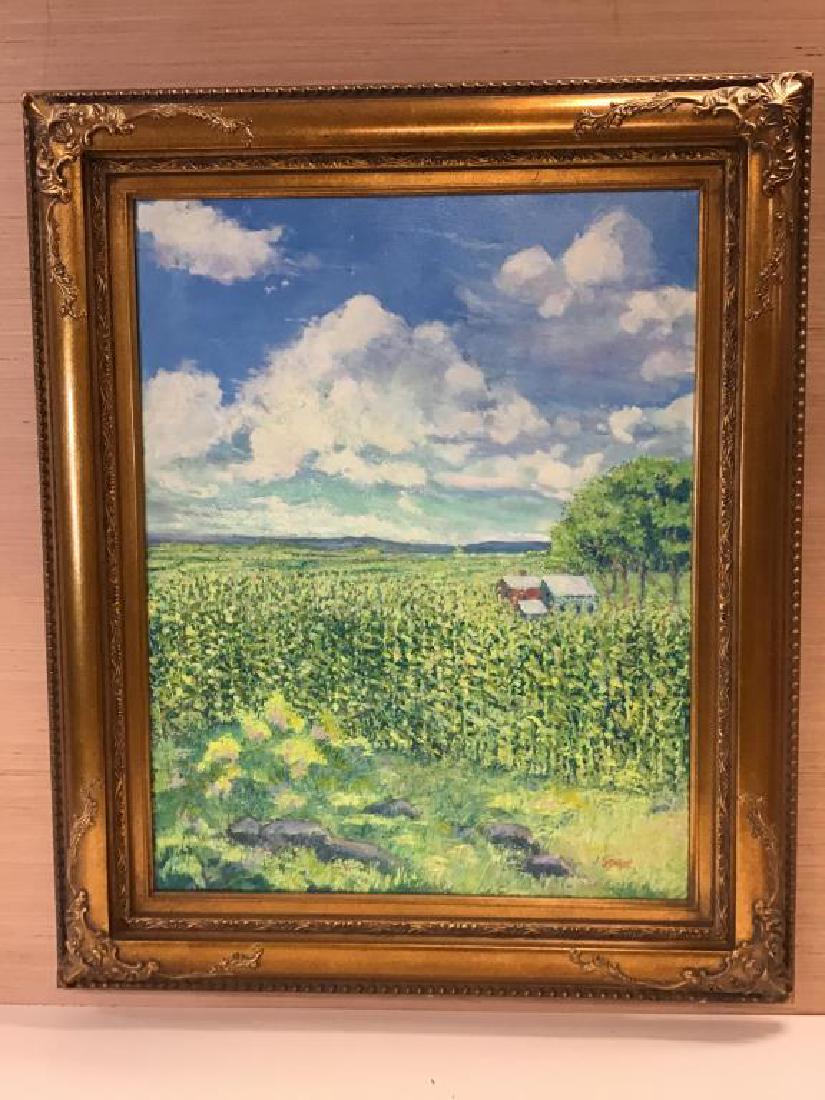 Gilt-Framed Miniature Oil/Board: Impressionist Landscape