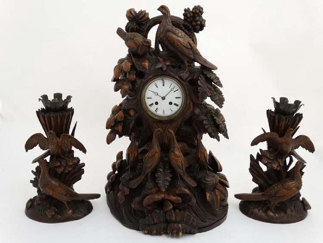 Impressive 19thC Black Forest clock and garnitures :