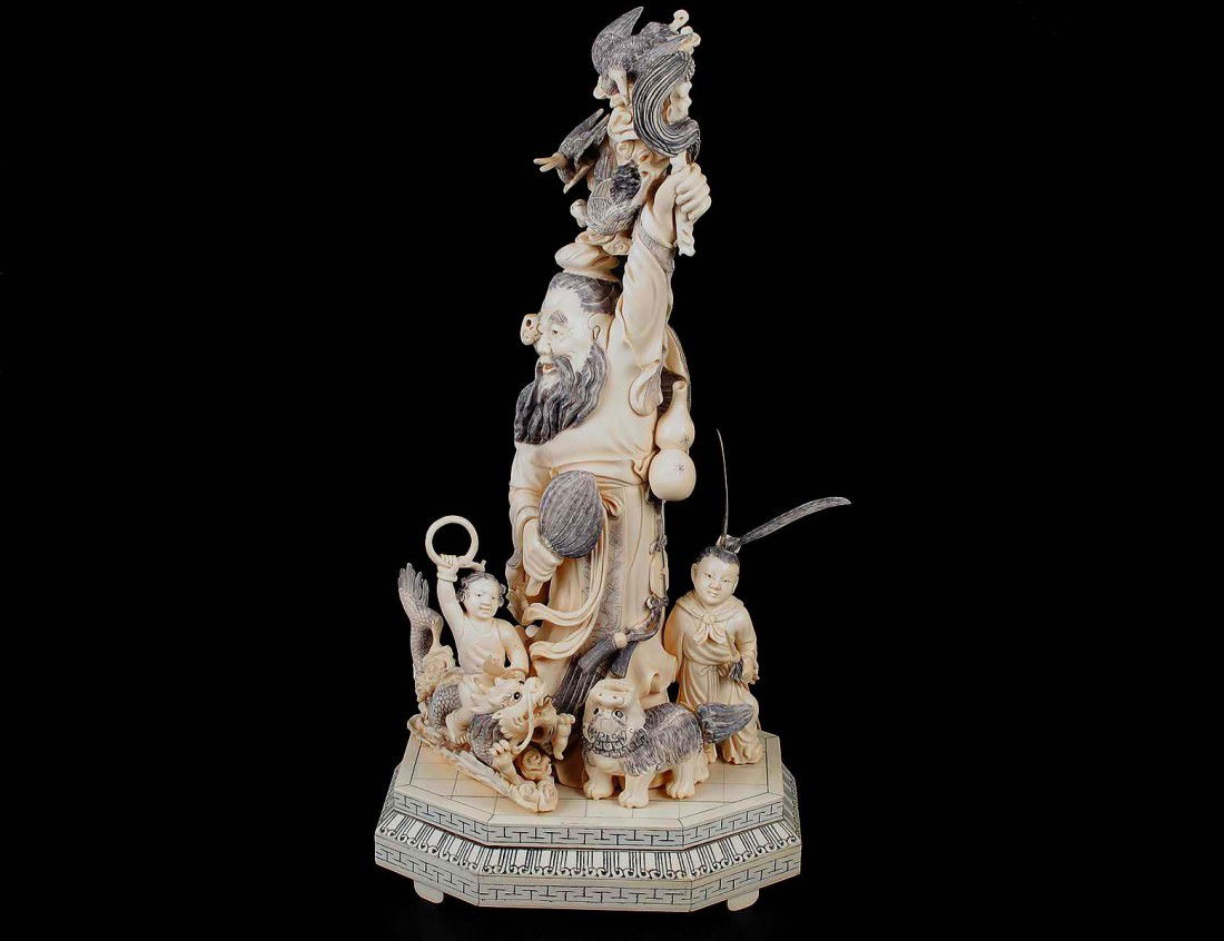 IMPRESSIVE CARVED IVORY GROUP