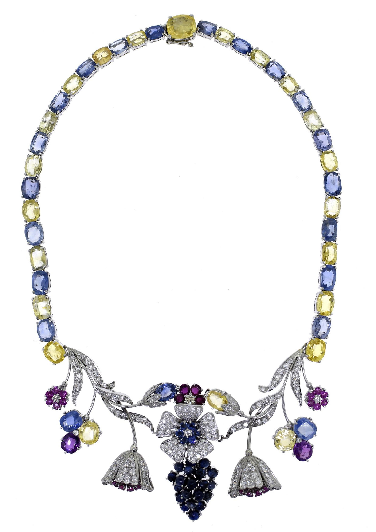 18K White Gold Ladies Necklace with 72.89ct Multi Colored Sapphire and 2.97ct tw Adjacent DiamondsRiverside Galleries4.4(203)$505 days Left
