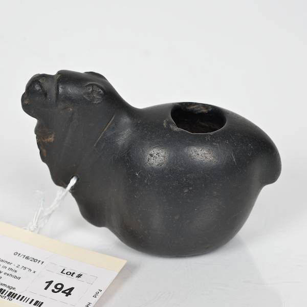 A BLACK POTTERY TWO-HANDLED VASE WITH CARVED DECORATION, LIANGZHU CULTUREMar 08, 2026An Egyptian Schist Hippopotamus Effigy, Late Period, Circa 664-332 BCE, 18ZB3 days LeftColima culture ceramic dog effigy vesselMar 01, 2026An Ancient Near Eastern Stone Zoomorphic Effigy, 3rd-1st Millennium BCE, 68FL1 day LeftA Near Eastern Stone Bird Effigy, 3rd-2nd Millennium BCE, 98FL3 days LeftA LARGE EGYPTIAN BLACK STONE AMULET LATE PERIOD, DYNASTY XXVI, 664-525 B.C.Mar 11, 2026Bamana Boli Power Figure, Mali5 days LeftNative American Mississippian Rabbit Handle Water VesselFeb 28, 2026PRE-COLUMBIAN OLMECA JADE DUCK MEDICINE CONTAINER2 days LeftNATIVE AMERICAN STONE PIGMENT MORTAR ARTIFACTMar 08, 2026Formerly in the collection of Song Dynasty Cizhou ware black-glazed water droppers15 hrs LeftA Mesopotamian Schist Recumbent Ram, Early 2nd Millennium BCE, 61LK1 day LeftEgyptian Jasper Hippopotamus Amulet6 days LeftJemdet Nasr Type Black Stone Seated Cow SealMar 05, 2026African Senufo, Ivory Coast, Decorated Mortar.Mar 01, 2026Western Asiatic Black Stone Bifacial Stamp Seal with Aramaic InscriptionMar 05, 2026