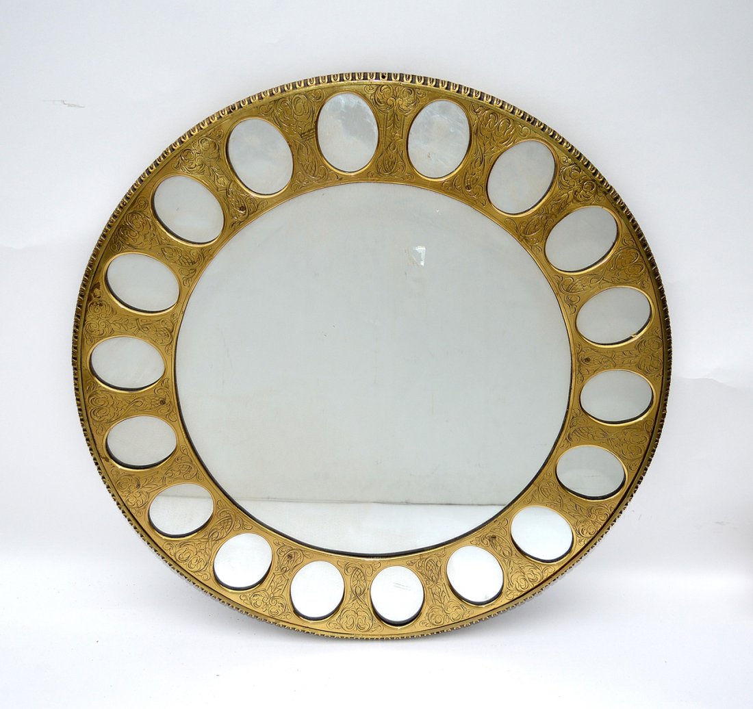 Incised Round Brass Mirror