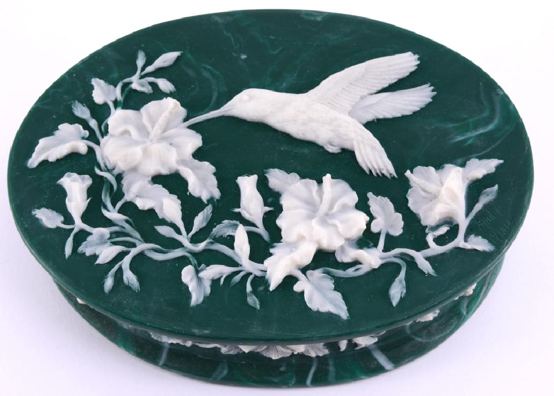 Dresser Box, Unmarked Wave Crest, Egg Crate MoldMar 21, 2026Ecclesiastical, Church Offering Box2 days LeftMARGO HOFF (AMERICAN, 1912-2008)Mar 27, 2026Antique Chinese Carved Zitan Wood & Jade Box7 days LeftDresser Box, Marked NakaraMar 21, 2026Vintage Filigree Ormolu Beveled Glass Jewelry Casket BoxMar 26, 2026Dresser Box, Unmarked Wave Crest, Egg Crate MoldMar 21, 202614 Porcelain, Wood, Musical, Glass & Inlaid Boxes2 days LeftItalian Shell-Form Leather Covered Jewelry BoxApr 14, 2026Neoclassical Style Ormolu-Mounted Agate Trinket Box2 days Left2 Trinket boxes By Italian "Ricard Ginoti" and "Herend"Mar 27, 2026Large Antique Porcelaine Trinket Box By "Meissen"Mar 27, 2026Jewel Box, Unmarked Wave Crest, Egg Crate MoldMar 21, 2026Jewel Box, Unmarked Wave Crest, Egg Crate MoldMar 21, 2026Dresser Box, Marked NakaraMar 21, 2026Wavecrest Collars & Cuffs Glass Dresser Box4 days Left