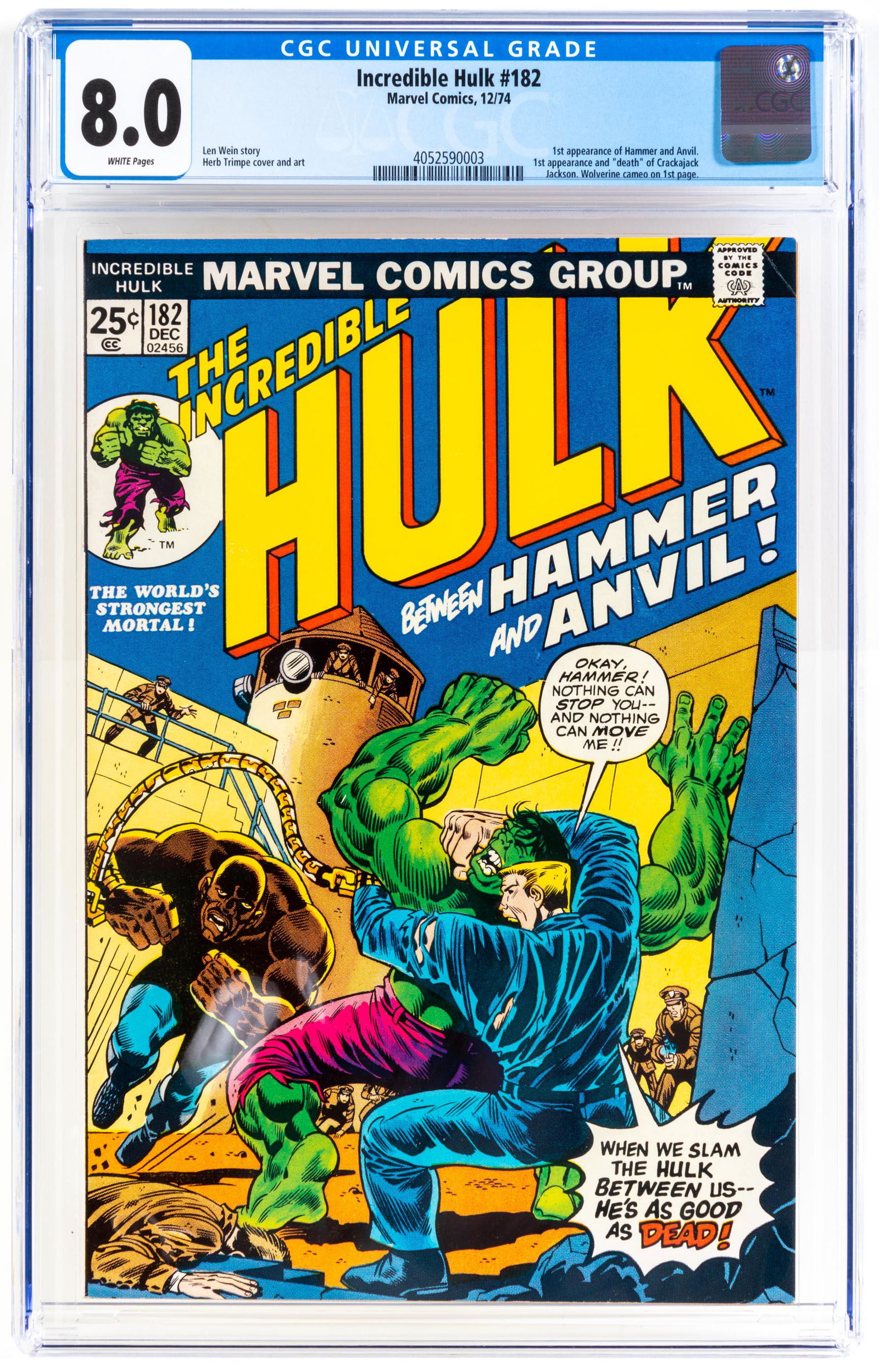 INCREDIBLE HULK #182 * CGC 8.0 * 3rd App: WOLVERINE