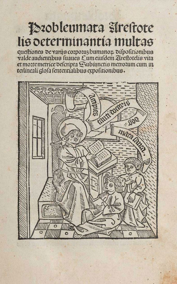 SoldAldina - AristoteleDe physica auscultatione Venezia, eredi di Aldo, 1551. In 8°. Marca al frontespizio e in fine volume, capilettera figurati, aloni di umidità, pergamena floscia coeva. § Perera, Benito. De communibuSee Sold Price