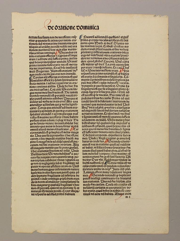 Soldc1485 Incunabula Leaf Life of SaintsAn incunable leaf in German circa 1485, double columned with a few rubrication marks on life of Saints. Fine, measures 9.5 x 14". Reserve: $30.00 Shipping: Domestic: Flat-rate of $5.00 to anywhere witSee Sold Price