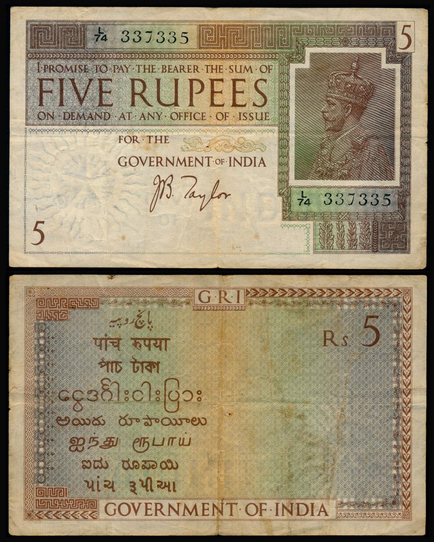 India 5 Rupees ND KGV