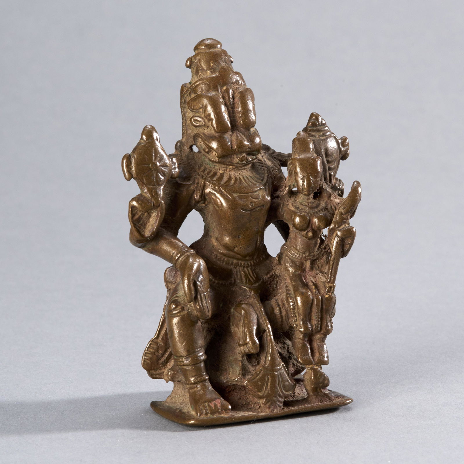 SoldIndian Bronze FigureSouth India,Ca. 17th - 18th century Well modelled depiction of Narasimha with consort. H. 4.25".H. 10.8 cmSee Sold Price