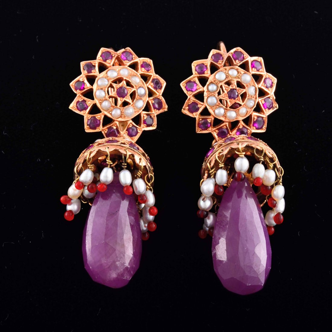 Indian gold ruby and pearl drop earrings