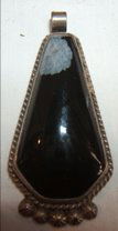 2pc DAN DOBSON Sterling Silver Southwest Indian Pendants. 1). Large Rectangular Pendant: Turquoise B2pc DAN DOBSON Sterling Silver Southwest Indian Pendants. 1). Large Rectangular Pendant: Turquoise Band bisecting Stone Pendant framed in small turquoise stones. Large Bale. 2). Spiny Oyster Shell Hea