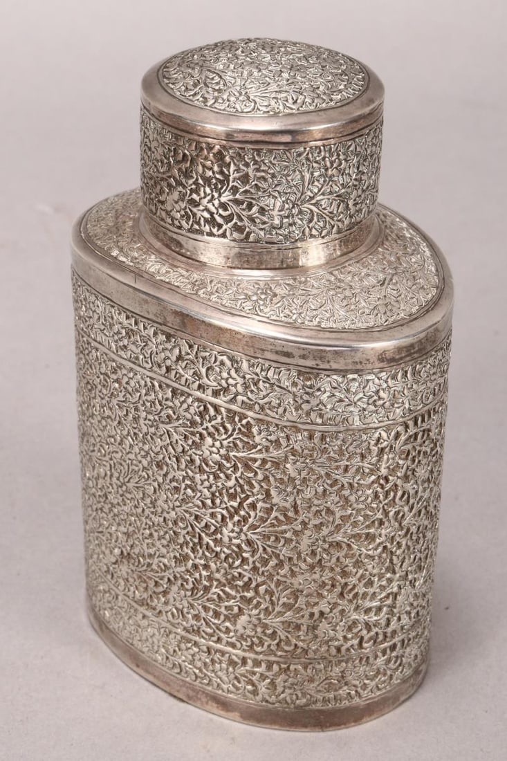 Kashmir circa 1910 An unusual early 20th century Anglo – Indian unmarked silver tea caddyFeb 18, 2026STERLING SILVER OVOID TEA CADDY WITH BUN-FORM LIFT COVER H: 4 5/8in. Wt. 4.4 troy oz.3 days LeftAmsterdam 1745 by I.H, perhaps Jean Hubert (1728-61) A mid-18th century Dutch silver miniature teaFeb 18, 2026A GEORGE III SILVER OVAL TEA CADDYFeb 17, 2026ASIAN / HINDU KUMKUM HEXAGONAL SHAPE BOX IN STERLING SILVER .925Feb 18, 2026Chinese Pewter Tea Caddy with Stone InlaysFeb 28, 2026A GEORGE III SILVER OVAL TEA CADDYFeb 17, 2026A LARGE SILVER HAVDALLAH COMPENDIUM. Ottoman Empire, c. 1900Feb 18, 2026Pair of Portuguese Silver Tea CaddiesFeb 25, 2026A SILVER HAMMERED JAR AND COVERFeb 17, 2026AN EDWARDIAN SILVER BARREL SHAPED POT AND COVERFeb 17, 2026Cutch circa 1890 A late 19th century Anglo – Indian unmarked silver large beakerFeb 18, 2026Exquisite Ball Black Co. 950 Silver Tea / Coffee Pot5 days LeftChinese silversmith. Lidded jar richly decorated in relief with flowers and ornaments.Antique Georgian English embossed sterling silver repousse floral coffee / tea pot, London, 1753,Feb 21, 2026Indian Enamelled Iron Hookah BaseMar 07, 2026