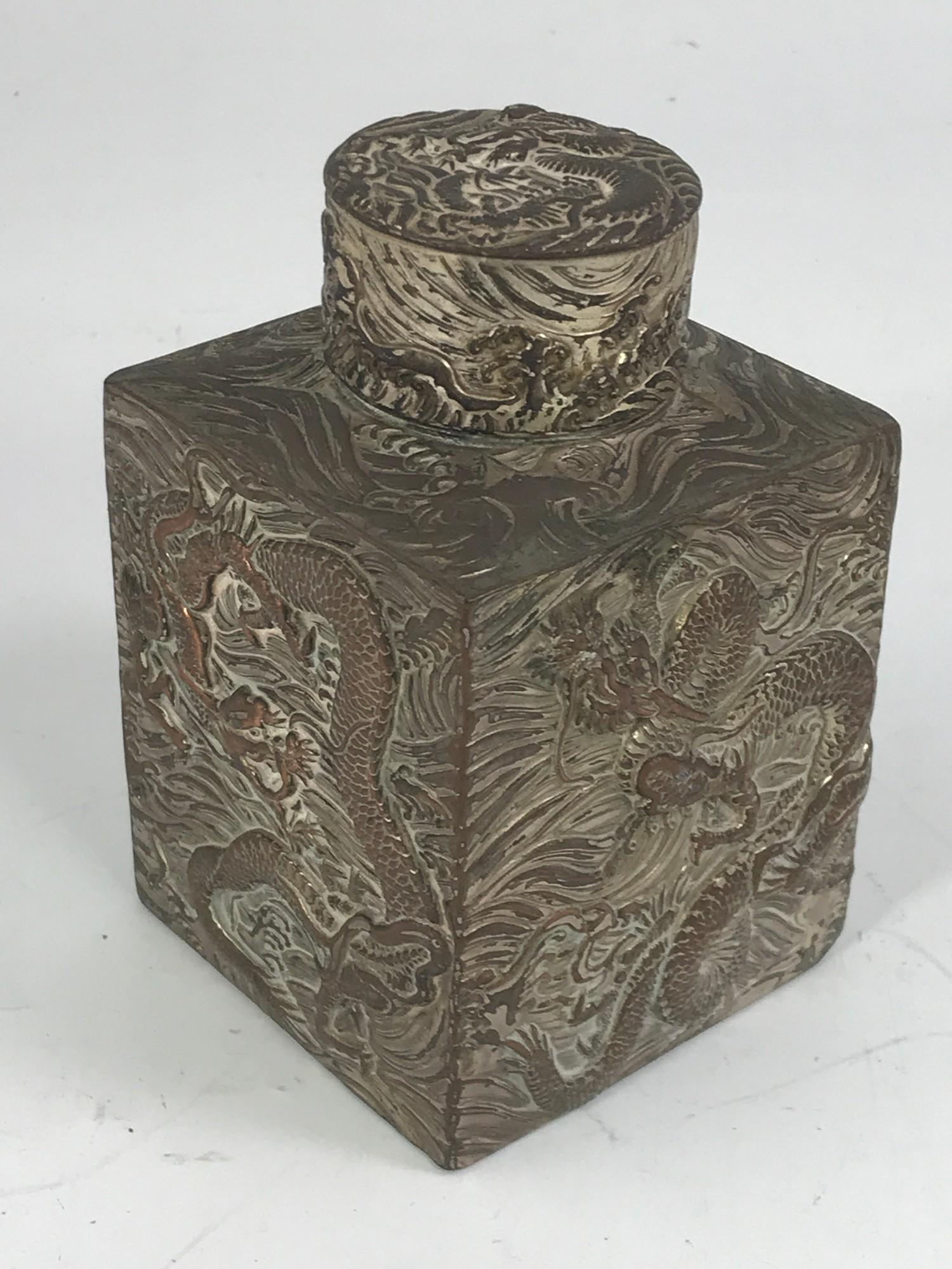 A CHINESE SILVERED BRONZE TEA CANISTER AND COVER. 17 cm high.Hannam's Auctioneers Ltd4.3(415)£806 hrs Left