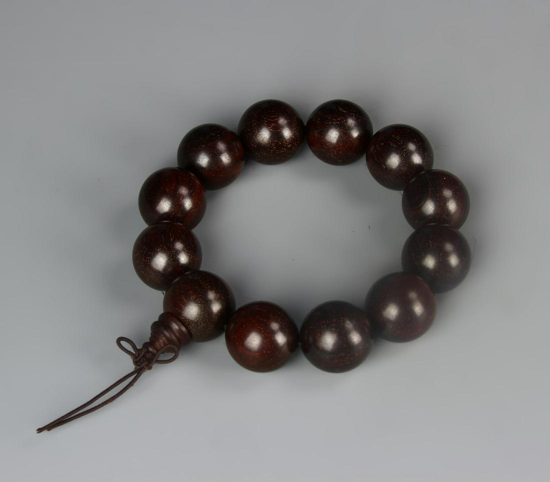 A ZITAN WOOD CARVED BEAD BRACELET