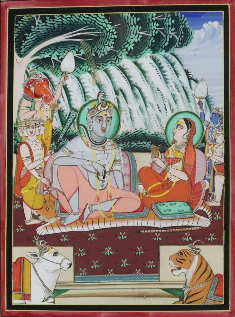 Vintage Indian Holy Family Shiva Parvati Ganesha Kartikeye Religious Miniature PaintingFeb 15, 2026LORD KRISHNA SLAYING A DEMON IN A PALACE GARDEN SCENEKRISHNA SUBDUES KALIYA NAGAVerev 1938 - Indian Pantheon - Divinities II1 day LeftVintage Indian Pichwai Krishna and Companion Original Painting on TextileFeb 15, 2026Pushtimarg Gauche Painting of Fokelore Date 1964DIVINE FURY, GODDESS DURGA IN ETERNAL TRIUMPH, MANKOT, PAHARI, NORTH INDIA, 19TH CENTURYFeb 15, 2026KRISHNA SAVES FROM THE CROCODILE – A MASTERPIECE INDIAN MINIATURE PAINTINGINDIA MALWA SCHOOL PAINTING FROM A BHAGWAT PURAN SERIESIndian Miniature Painting – Krishna and Radha with Gopis in Garden SceneFeb 13, 2026WOMEN IN A TEMPLE, INDIA, JAIPUR, 18TH CENTURYFeb 15, 2026Persian Maharajah Romantic Illuminate PaintingFeb 14, 2026Two Indian Pichwais, Second Half of 20th CenturyVASUDEVA CROSSING THE YAMUNA WITH BABY KRISHNAMughal School, erotic miniatureFeb 18, 2026Verev 1938 - Indian Pantheon - Divinities III1 day Left