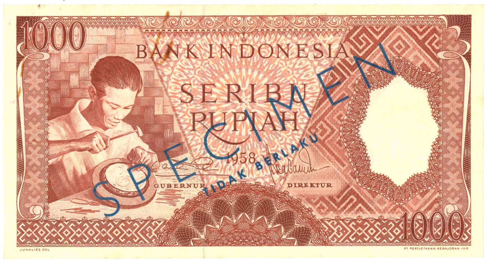 Indonesia. 1000 Rupiah. Specimen. Type 1958. -
