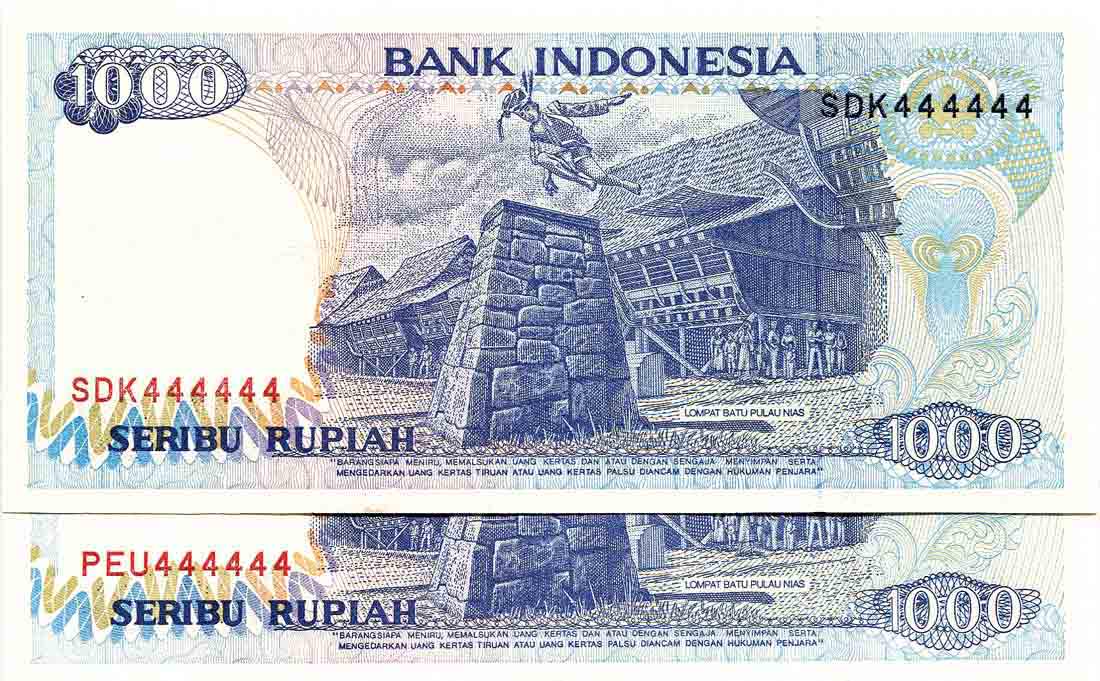 Indonesia 1992/97, 1000 Rupiah (P129f) Solid 4's SDK /