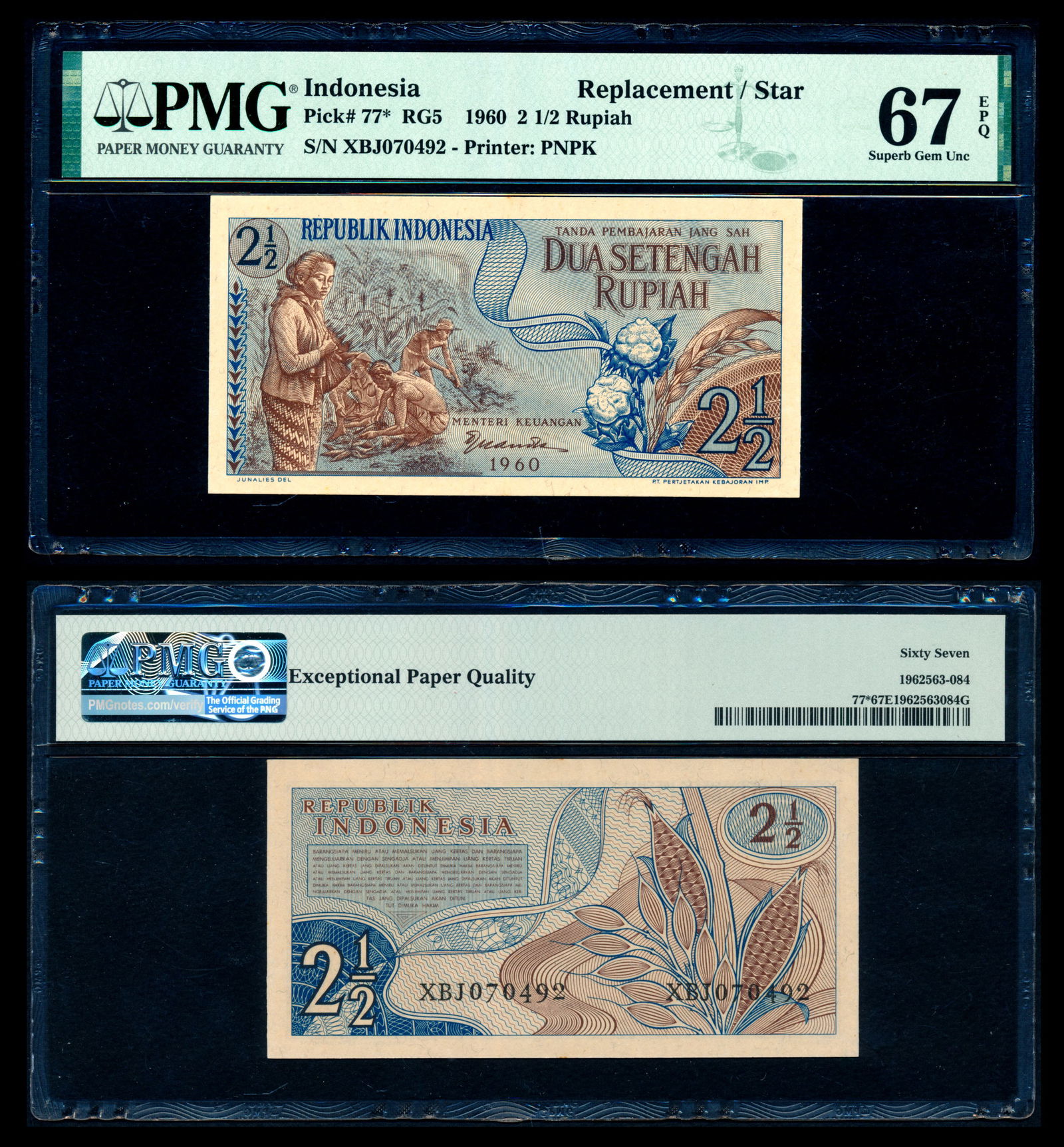 Indonesia 2-1/2 Rupiah 1960 replacement PMG