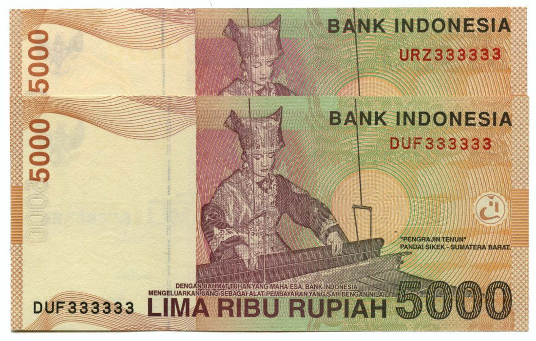 INDONESIA 5,000-Rupiah 2001 Solid number, 333333
