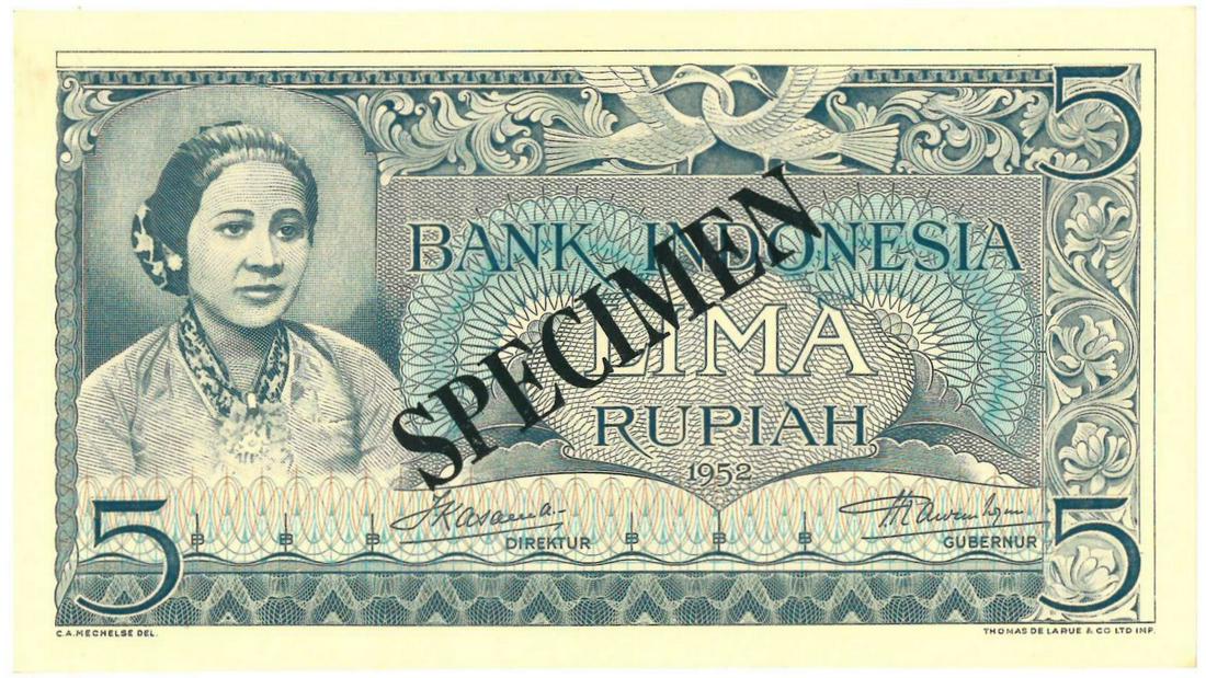 Indonesia. 5 Rupiah. Specimen. Type 1952. - UNC.
